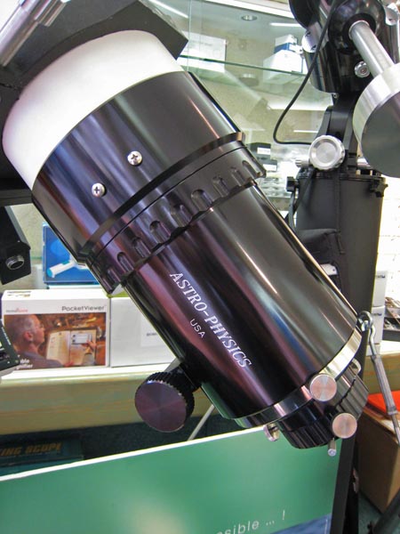 à gauche StarFire 140 EDF, à droite StarFire 155 EDF. Vous pouvez voir les vis de collimation sur chaque barillet. Le pare buée de la 140 est doté d'une "lèvre" pare buée et anti réflections spéciale