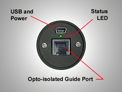 Malgré sa compacité elle est dotée du classique port d'autoguidage SBIG RJ opto-isolé et d'un vrai obturateur mécanique pour la réalisation de darks sans avoir à replacer le capot sur l'instrument!